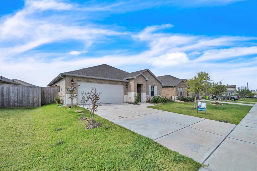 **Ready for immediate move-in** A charming 3-bedroom, 2-bathroom energy-efficient home—just one year new!! A dream kitchen with an open concept, tons of storage with pots & pans drawers, a Drinking Water Filtration System, white cabinetry adorned with ornamental white granite countertops, and elegant gray-tone EVP flooring. The private primary bedroom leads to dual vanities, a separate glass-enclosed shower, and a walk-in closet in the primary bath. Vinyl plants through the entry, dining, kitchen, and family room, beautiful tiles through wet areas, and carpet throughout the bedrooms. Zoned to the highly rated Lamar Consolidated ISD. This home is built with innovative, energy-efficient features designed to provide greater savings, enhanced health, true comfort, and easy access to shops, dining, and more. Please remove your shoes when entering the carpeted area. **Refrigerator, washer, and dryer are included**