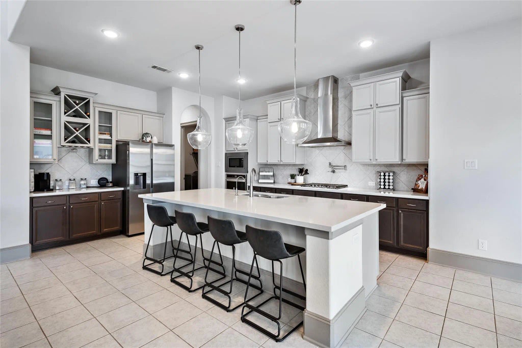 Nestled in a serene, well-established neighborhood, this stunning 3,656 sq.ft. traditional home offers timeless charm and modern comforts. The grand foyer opens to a spacious living area featuring a cozy gas fireplace, perfect for gatherings. The gourmet kitchen boasts an island, gas cooktop, and convenient pot filler, seamlessly integrating into the open-concept design. The main floor hosts two bedrooms; a luxurious primary suite exuding elegance; a dedicated office space ideal for remote work, and a secondary bedroom. Upstairs, you'll find two additional bedrooms, a media room, and a game room—perfect for entertainment. The fully fenced backyard provides a private oasis with no side neighbors, located at the end of a cul-de-sac with ample guest parking in front and enough space for a pool. Thoughtfully designed with classic finishes and meticulous attention to detail, this home offers the perfect blend of comfort and sophistication. Experience the beauty of traditional living.