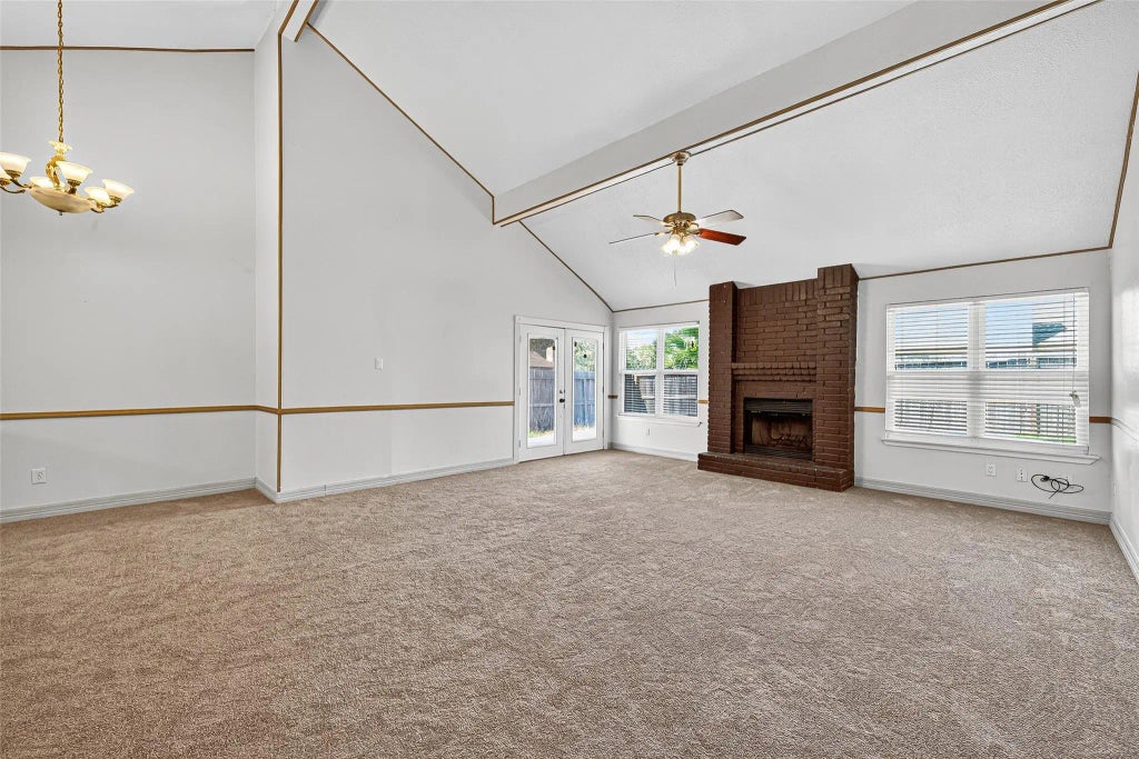This lovely one-story home sits on a corner lot and offers great curb appeal. This home comes with recently installed double pane energy efficient windows in 2024 along with new carpet and flooring, new dish washer and has an open floor plan comes with vaulted ceilings and has a generous size family room. You will stay warm on the cold winter nights near the fireplace. The kitchen comes with plenty of wood cabinets for storage, counter space, and stainless-steel appliances including a refrigerator. Entertain guests at the formal dining area or simply eat at the barstool area. The three spacious bedrooms come with ceiling fans along with drapes along with large closets. Primary bathroom offers double sinks, jetted tub, and tiled shower. The French double doors lead you outside to the covered patio in the backyard. Home comes with quarterly pest control service. Just mins away from the elementary school.