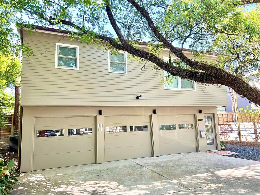 Elegant recently renovated 1/1 garage apartment w/ studio or garage space downstairs across from Menil Park! Many custom details throughout, Bright living area with vaulted ceilings and skylights, beautiful white oak hardwood floors, lots of natural light, kitchen features quartz countertops, stainless steel appliances and undercabinet lighting, bedroom features recessed lights and good closet space, downstairs functional living space may be used as a studio / study or garage parking, very unique garage apartment in a one of kind location!!