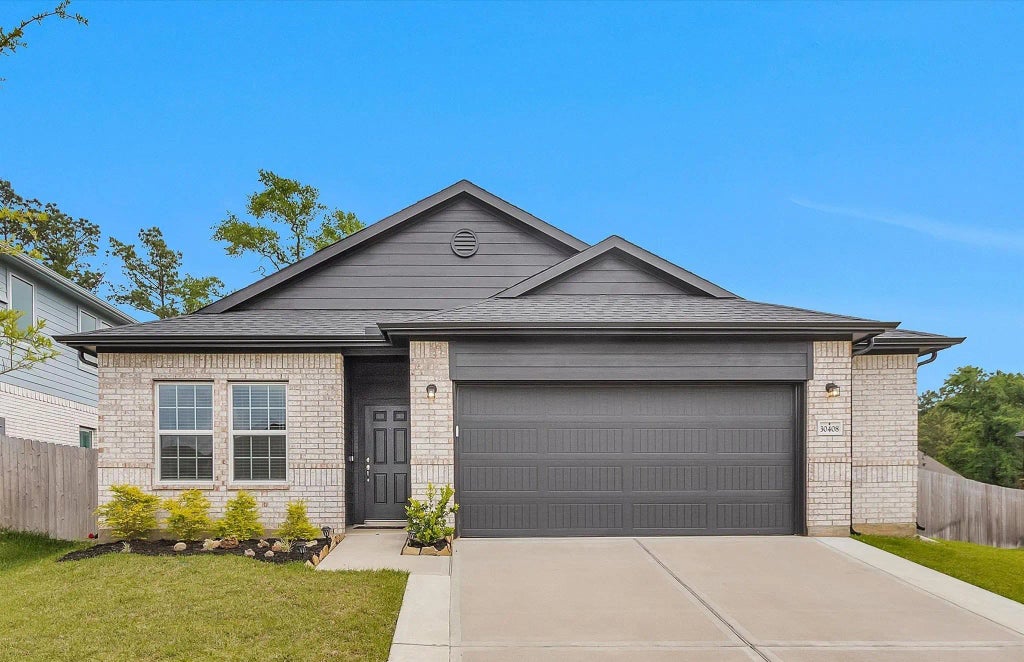 Updated, like-new home with all the builder upgrades! This spacious, open plan home is located on one of the largest lots in the subdivision, on a corner & backs on to a green belt. Only one side neighbor. With a fully fenced back yard & 10 zone sprinkler system, there is plenty of room for a pool, outdoor kitchen, trampoline, vegetable garden, green house, etc. The interior boasts a modern black & white theme including lighting & hardware finishes. The central island kitchen has a large walk-in pantry, an additional bank of cabinetry, SS appliances (stove includes gas, convection & air fryer options) & under cabinet lighting. Flex area at the back of the home is currently used as a home office. Primary suite includes an extended shower & double sinks. Back porch is screened-in with ceiling fan & has an extended slab with gas stub for outdoor cooking. Whole home water filtration system & extended 5' side storage area on the garage complete this updated home.